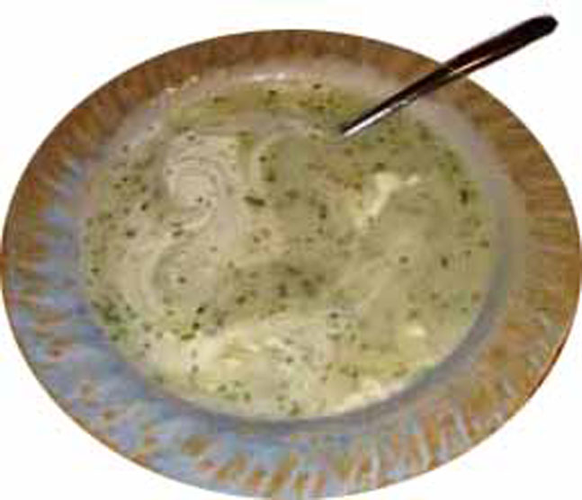 Die Kräuter können auch in einem anderen Topf mit Butter uns Salz kurz angedämpft werden, dann den durchgesiebtem Haferschleim dazu geben und mit Rahm abschmecken.