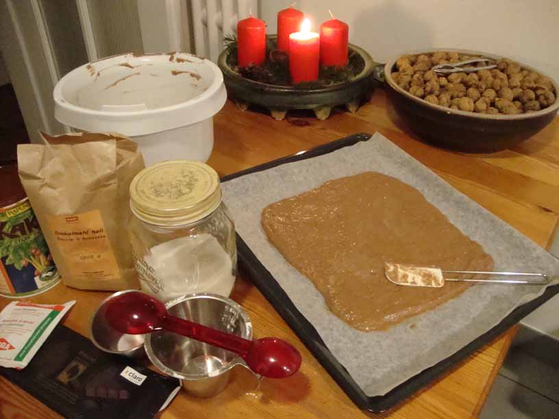 Zucker ist ein Phosphor-Räuber. Bei Phosphor-Verlust geht auch Calcium verloren. Der süsse Geschmack auf der Zunge bewirkt die Insulinausschüttung, d.h. eine Unterzuckerung mit nachfolgenden Gelüsten nach noch mehr Süssigkeiten. Das Gebäck ist wirklich nicht sehr süss, wem es zu wenig ist, der kann mehr Zucker beifügen.
